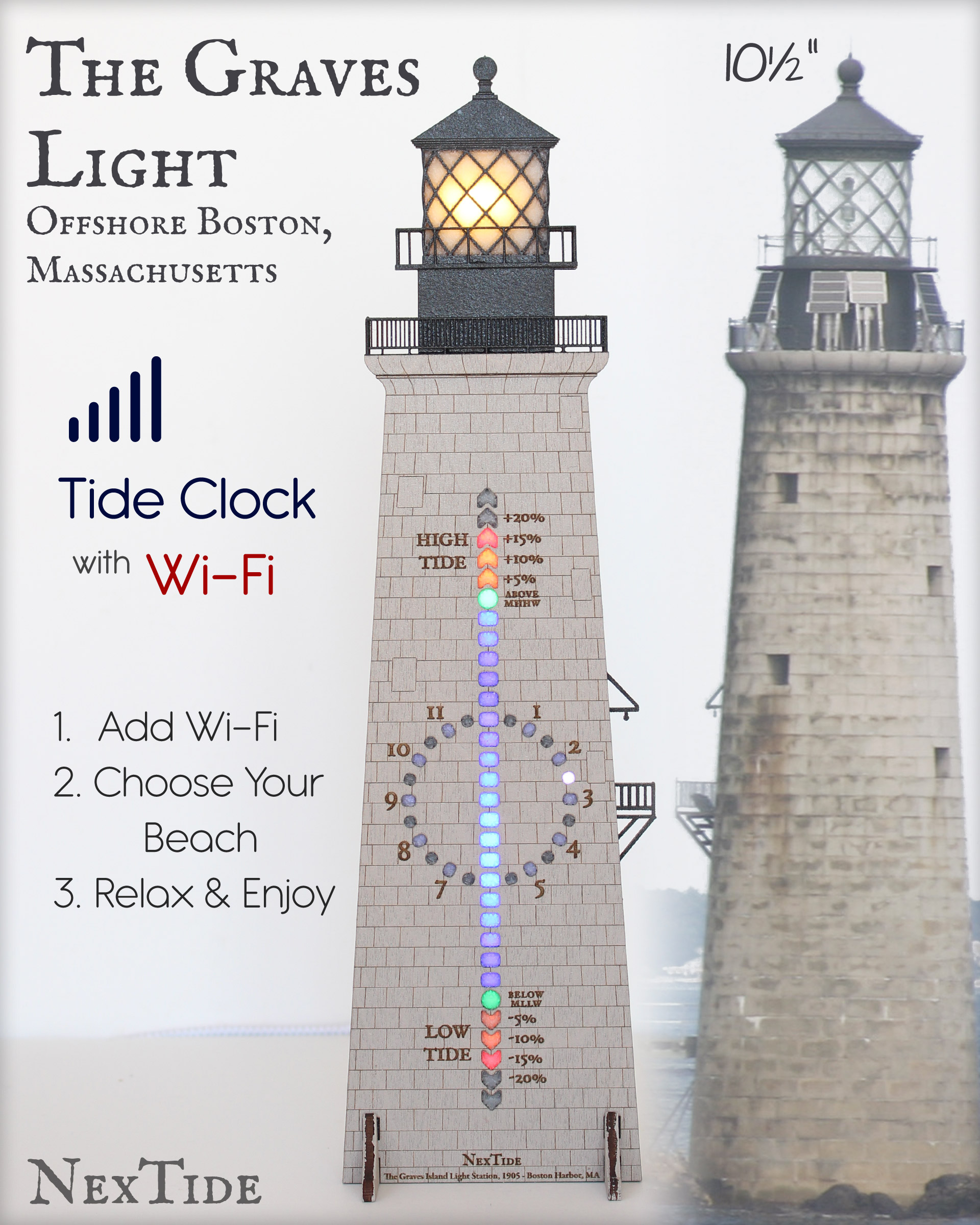 Select your NOAA tide location from thousands of harbors, inlets, waterways and beaches.  Easily connect the NexTide to your home Wi-Fi network using your mobile device, then it will handle the rest for years to come.