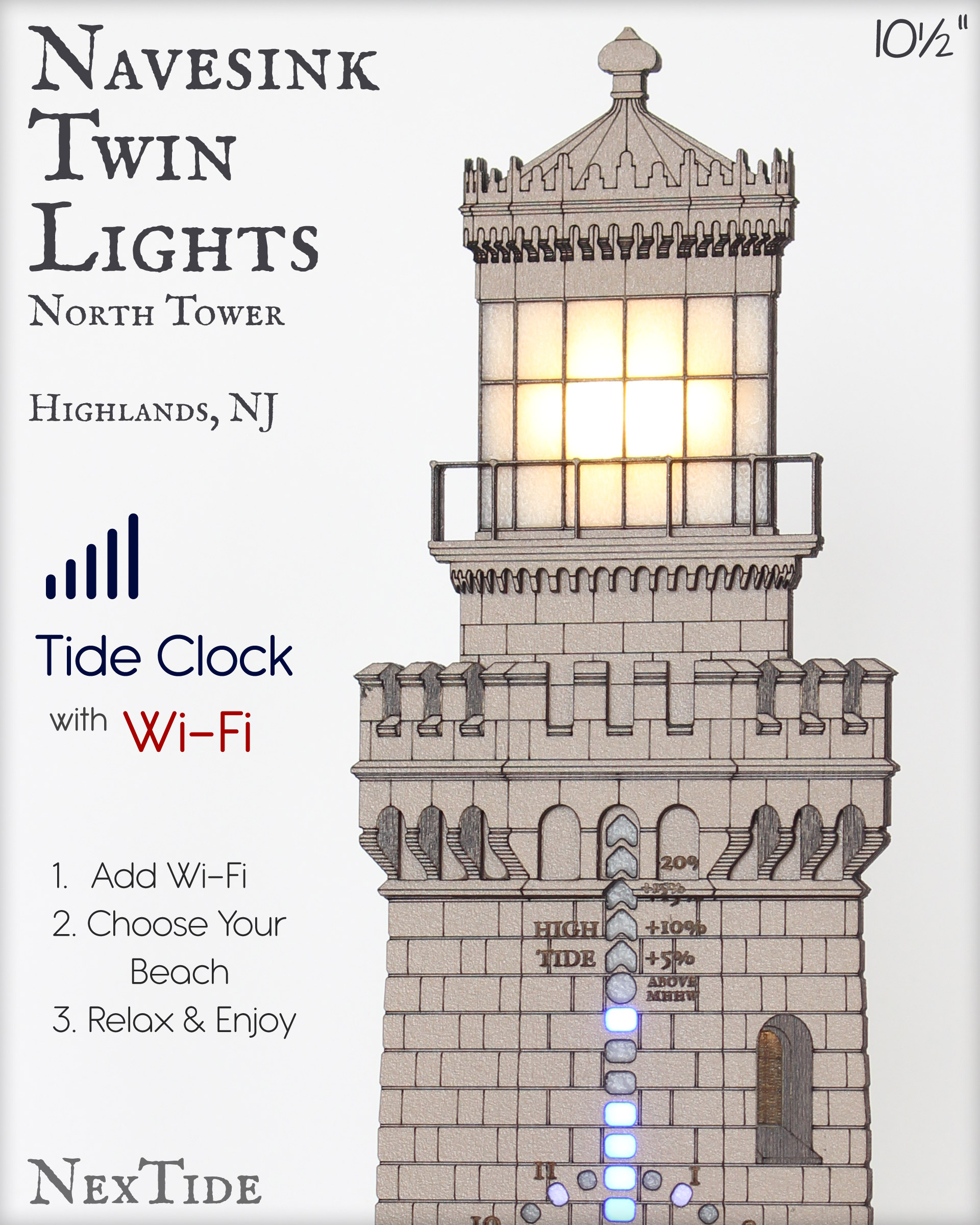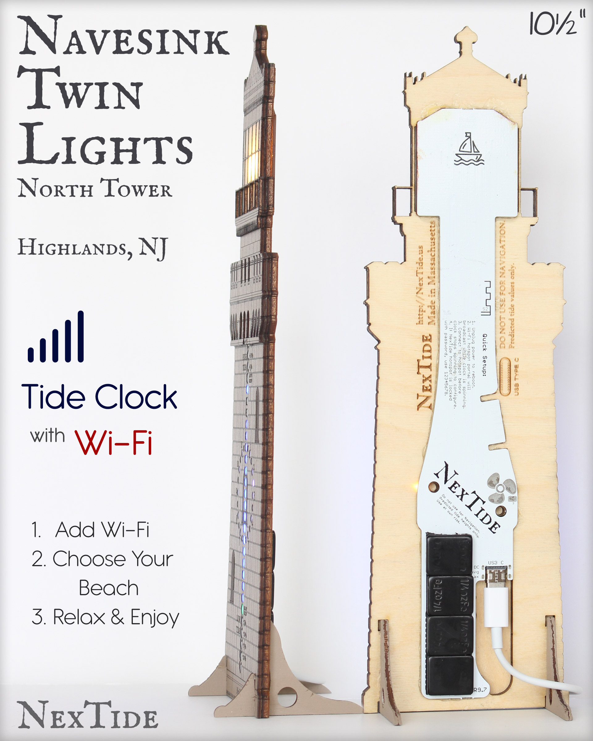 Select your NOAA tide location from thousands of harbors, inlets, waterways and beaches. Easily connect the NexTide to your home Wi-Fi network using your mobile device, then it will handle the rest for years to come.