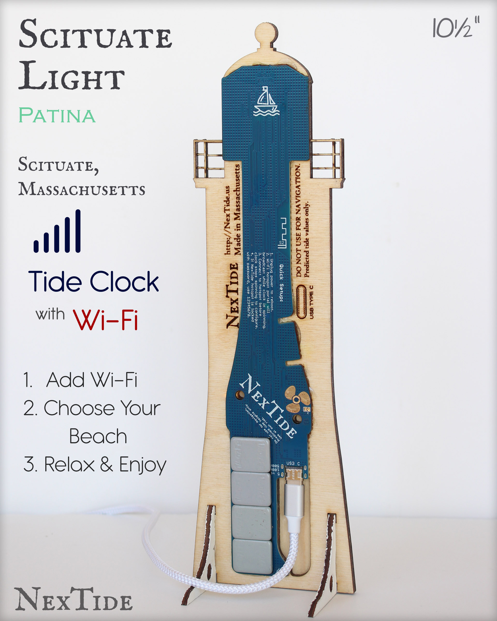 Select your NOAA tide location from thousands of harbors, inlets, waterways and beaches. Easily connect the NexTide to your home Wi-Fi network using your mobile device, then it will handle the rest for years to come.